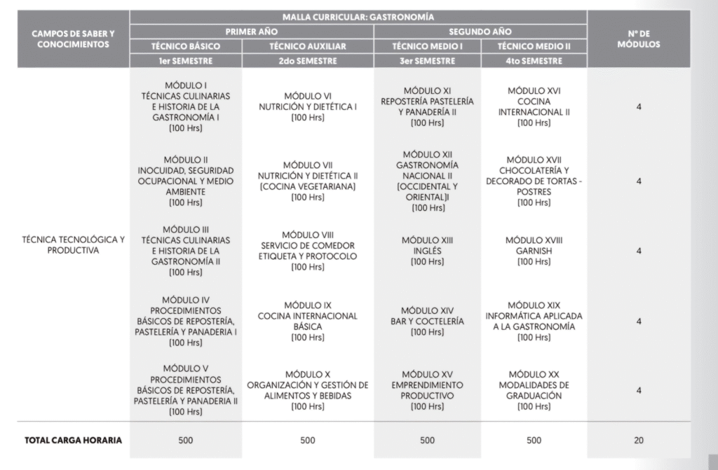 Desarrollar habilidades culinarias y de gestion en el ámbito gastronómico, preparando a los estudiantes para crear platos innovadores y de alta calidad. Los egresados deberán dominar técnicas de cocina, presentación de alimentos y seguridad alimentaria. También se les formará en la gestión de servicios de alimentación, incluyendo aspectos de administración, costos y atención al cliente, promoviendo la sostenibilidad y la creatividad en la gastronomía.